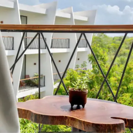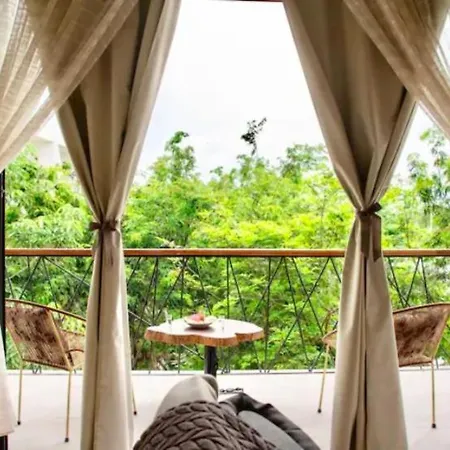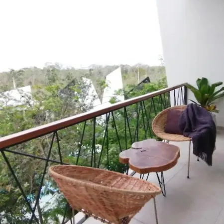 Staying at Entire Apartment At Dk Tulum, guests have access to a balcony equipped with an air conditioner.